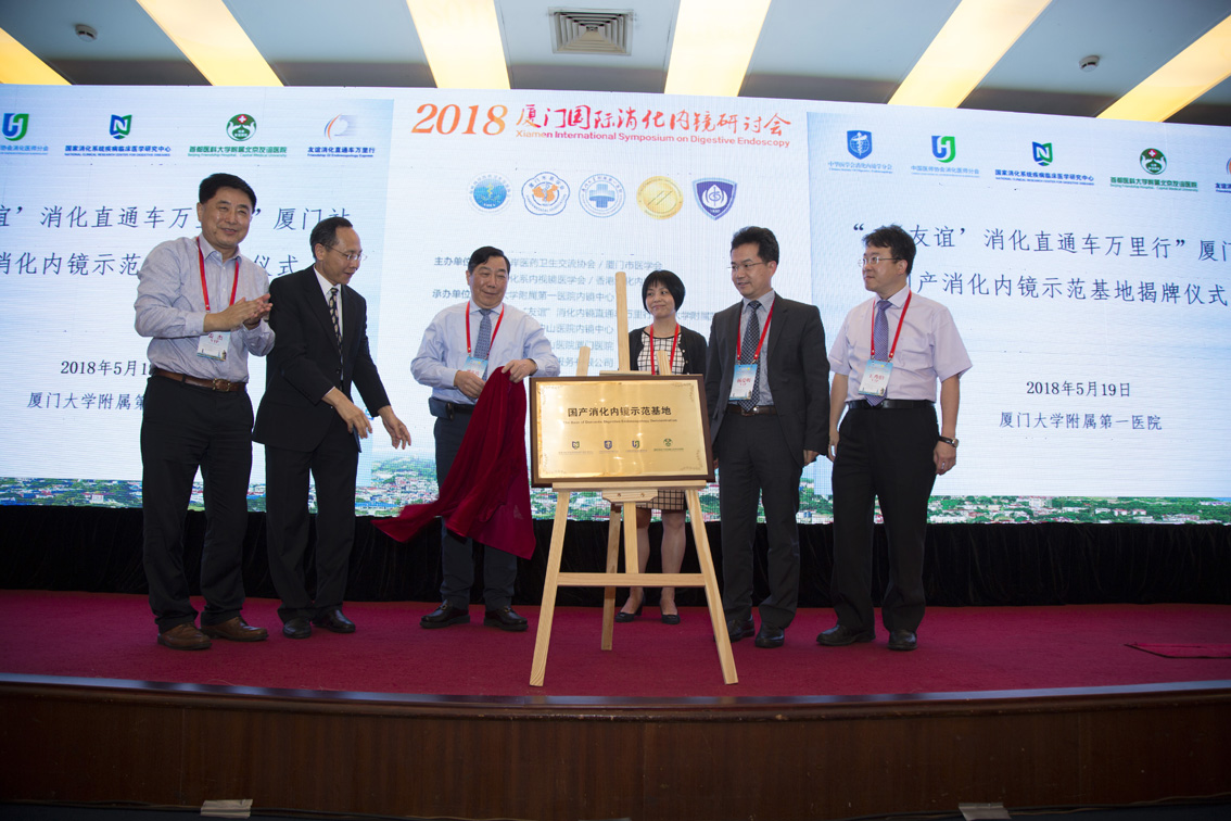 直通車廈門站的活動(dòng)借大會(huì)東風(fēng),邀請(qǐng)了來自北京協(xié)和醫(yī)院的楊愛明教授、復(fù)旦大學(xué)附屬中山醫(yī)院的姚禮慶教授,廈門市衛(wèi)生和計(jì)劃生育委員會(huì)的孫衛(wèi)主任以及臺(tái)港澳代表一起為廈門大學(xué)附屬第一醫(yī)院進(jìn)行了“國產(chǎn)消化內(nèi)鏡示范基地”的授牌儀式。