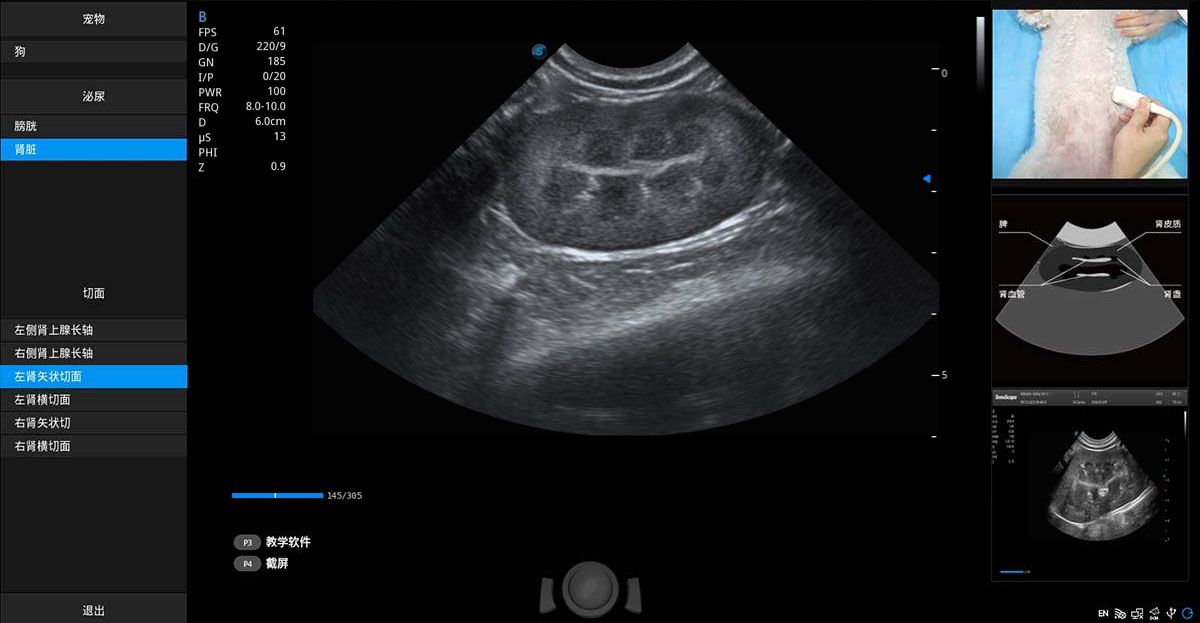 提供解剖示意圖、標(biāo)準(zhǔn)超聲圖像、掃查手法涂和操作者實(shí)時檢查圖像,指導(dǎo)操作者進(jìn)行標(biāo)準(zhǔn)切面的正確掃查。