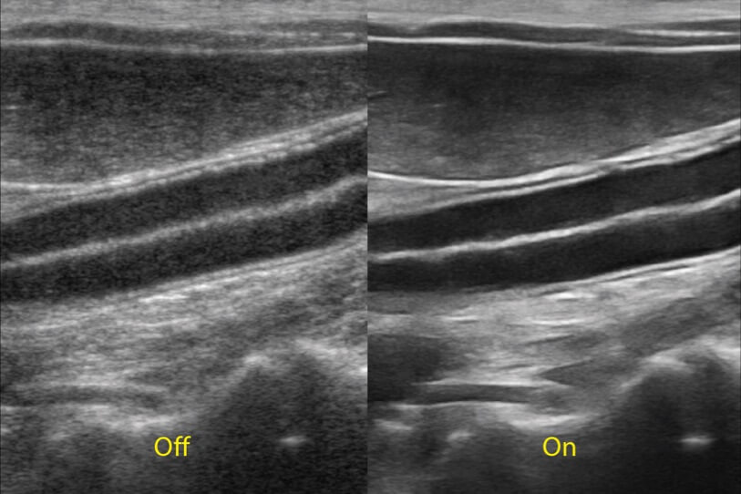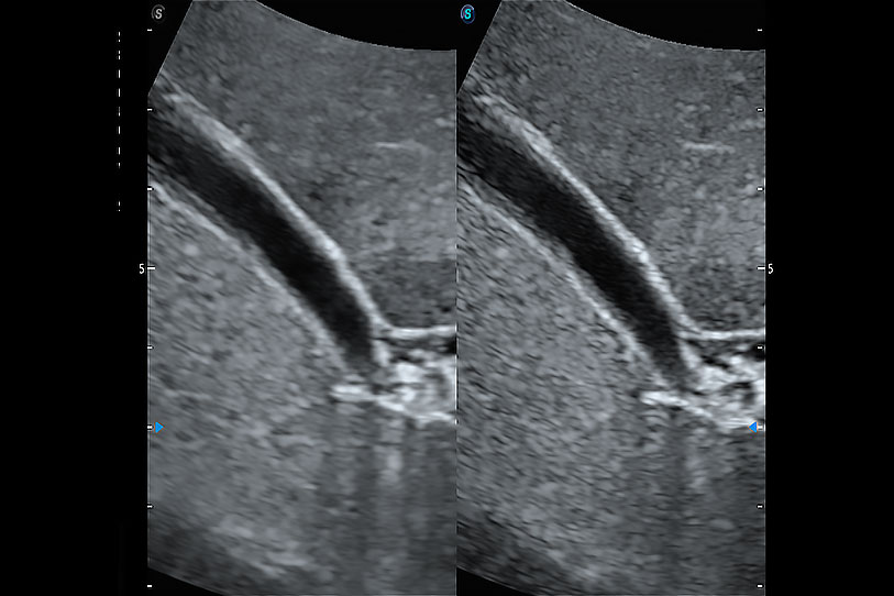 ProPet 70 進(jìn)一步提升了微米成像算法,更加注重對基礎(chǔ)原始圖像的還原和保留,在有效減少斑點(diǎn)噪聲、增強(qiáng)組織邊界顯示的同時(shí),避免過度優(yōu)化丟失真實(shí)的解剖信息。